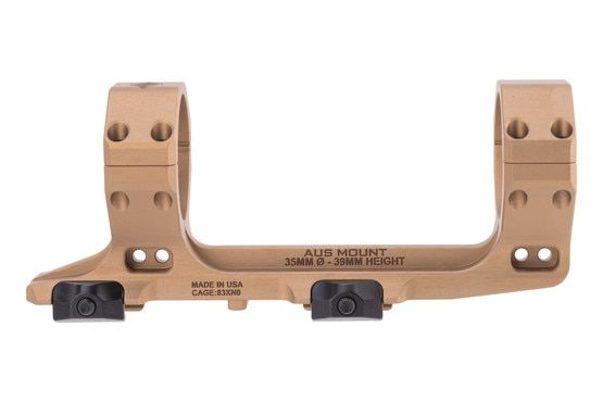 Constructed from a single piece of billet 7075-T6 aluminum, the AUS Mount is machined to perfection. It is then finished with MIL-STD Type III, Class 2 hard anodized coating in FDE, providing excellent resistance to wear and corrosion.