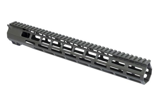 The Grey Ghost Precision AR-15 Free Float M-LOK Handguard comes with all the features you want while still being minimalist and lightweight. This 15” model only weighs 12.8 ounces and utilizes a non-proprietary barrel nut for attaching to your rifle. Torque the barrel nut to 65 ft/lbs. and then you can slide the handguard on while the anti-rotation tabs ensure it is indexed with the receiver. The free float handguard can then be torqued down to 35 in/lbs. and you have a rock solid set up for mounting any accessory you could need. There are M-LOK slots along the bottom and sides as well as the 1 and 11 o’clock positions at the muzzle end. The full length picatinny top rail is t-marked and sits flush with your M4 flat top upper. Each GGP AR-15 handguard is extruded from 6061-T6 aluminum and treated with an Olive Drab Green Cerakote finish.