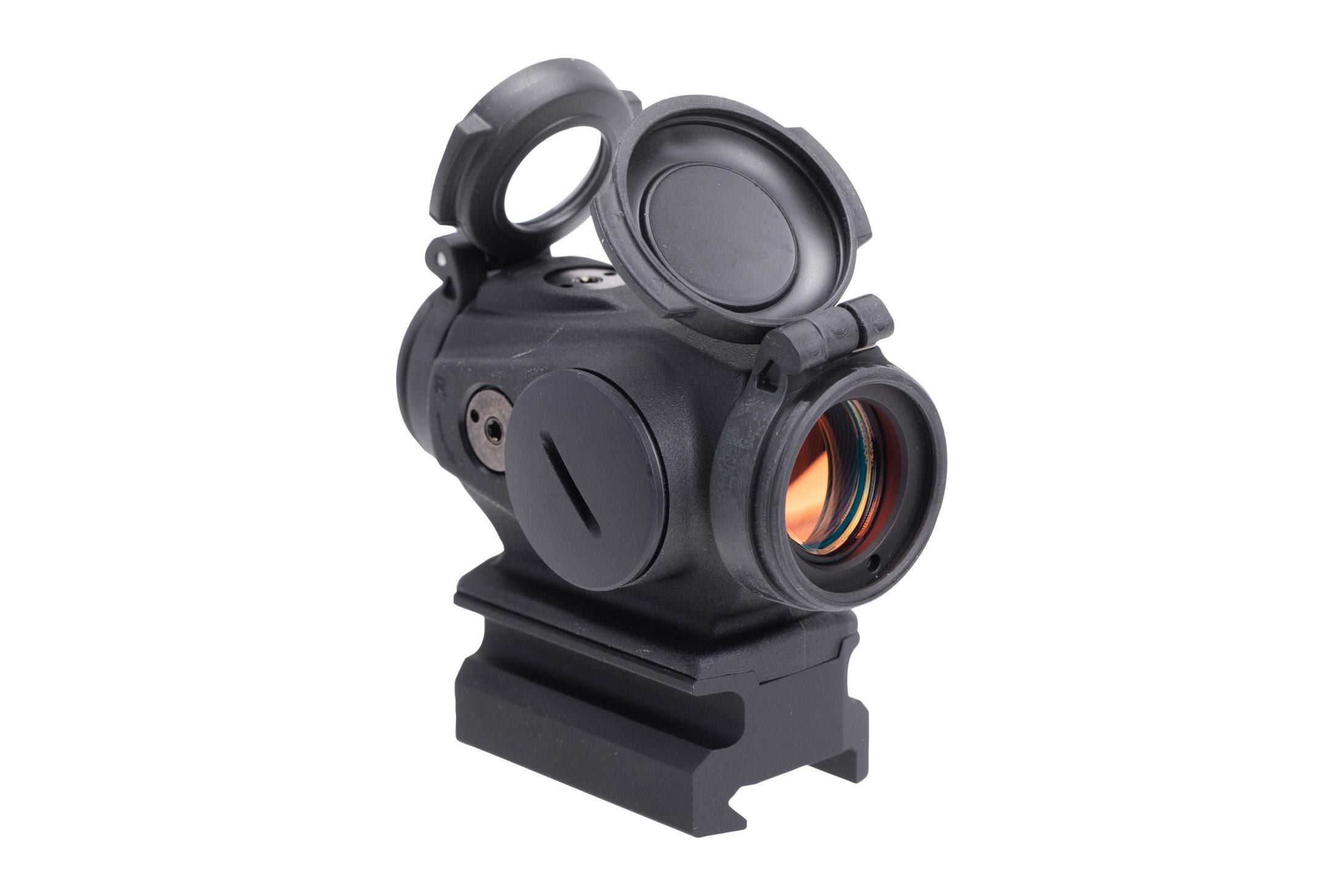 The Aimpoint Duty RDS is a compact 1x red dot optic engineered for rapid target acquisition and dependable performance in demanding conditions. Featuring a crisp 2 MOA red dot, this sight supports both close-quarters response and accurate engagement at medium ranges. Its digital keypad allows quick brightness adjustments across 10 settings, including 4 night vision-compatible modes, and the unit runs continuously for over 30,000 hours on a single CR2032 battery. The sealed windage and elevation turrets are flush-mounted and waterproof, while the pressure-forged aluminum housing resists impact, vibration, and submersion up to 80 feet. This optic is equipped with flip-up lens covers, a torsion nut mount, and a spacer for out-of-box compatibility with a wide range of AR-style platforms.