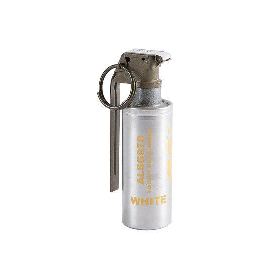 The ALSG978W Pocket Smoke Grenade is a compact pyrotechnic canister engineered for rapid smoke deployment in tactical scenarios. It is used in law enforcement operations requiring quick obscuration or signaling in confined or time-sensitive environments. The unit emits white smoke and features a reduced form factor for easy carriage and expedited activation. Made in the USA.