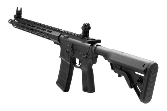 For customization, this rifle boasts a 15" MLOK handguard, providing ample space for mounting accessories. The lower receiver, also forged from 7075 aluminum, features a Type 3 hard coat anodized finish. It includes a mil-spec lower parts kit with an ambidextrous selector switch, an enhanced trigger guard, and a B5 Systems Bravo stock for comfort. Additionally, the ergonomic B5 Systems P-Grip 23 pistol grip enhances control.