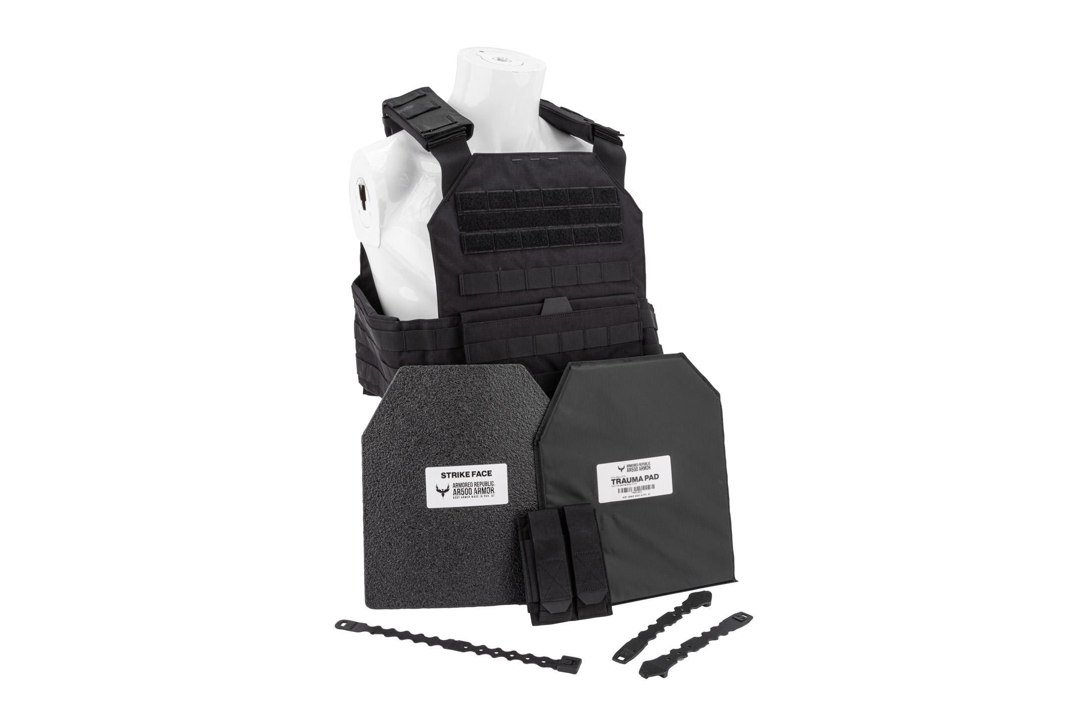 AR500 Armor Testudo Lite Carrier with Plates and Double Pistol Mag Pouch - Black