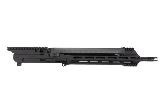The AR57 ULT Complete Upper Assembly, chambered in 5.7x28mm with a 12" lightweight barrel and M-LOK rails transforms any AR-15 lower into a 5.7x28 firearm. Featuring a unique top-loading design that ejects downward through the AR-15 mag well, this lightweight upper features a stronger, lighter rail with a melonite black coating. The steel barrel, muzzle brake, bolt carrier group, buffer, and screws are integrated into an alloy monobloc receiver for durability. The 8620 alloy bolt provides reliable performance. This upper includes an ultra-lightweight barrel, proprietary buffer, ambidextrous magazine release, reversible charging handle, M-LOK handguard, and a 50-round magazine.