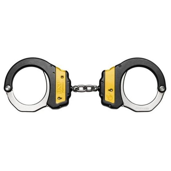 The ASP Ultra Plus Cuffs set a new benchmark for strength, precision, and safety in hand restraints, featuring a lightweight forged aluminum frame. Designed for optimal performance, these cuffs incorporate a conical bow for a secure fit, dual-sided keyways for quick access, and replaceable lock sets for easy maintenance. The high-strength aluminum construction ensures durability without adding extra weight, while the smooth, rounded edges provide a safer experience for both the officer and the detainee. The cuffs include yellow identifier bands for easy visual recognition.