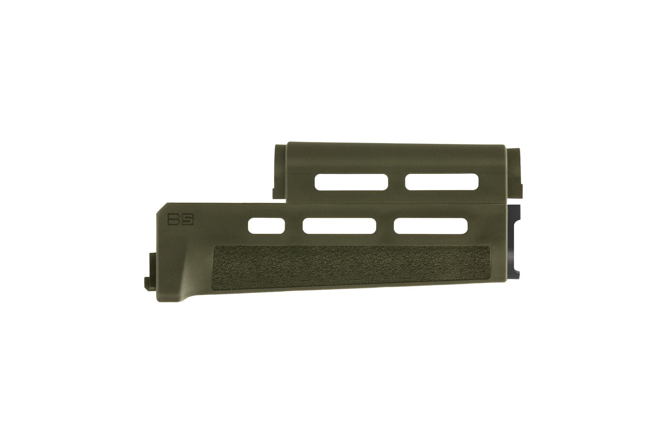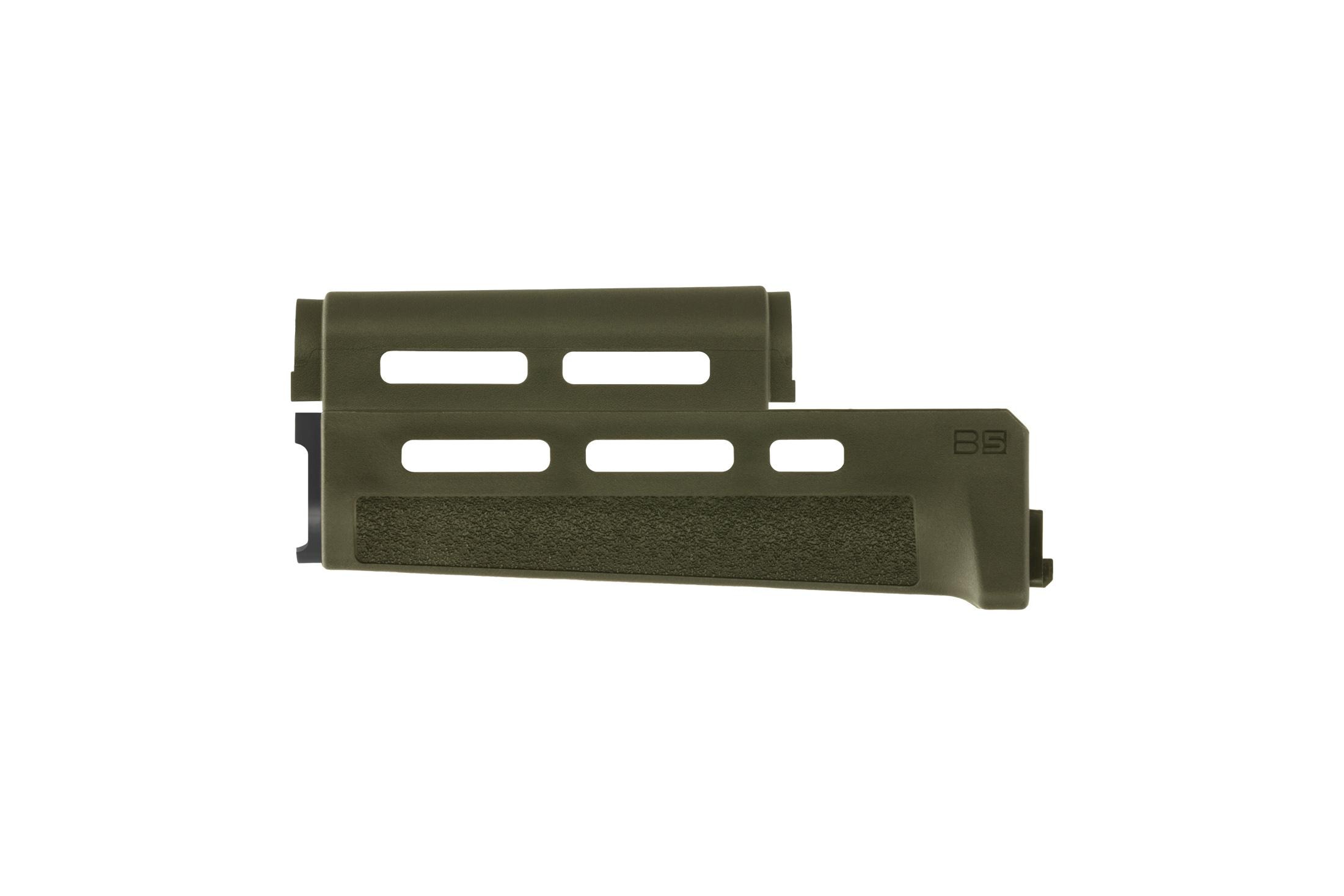 Upgrade your AK with the B5 Systems AK Handguard. This handguard works with AKM pattern stamped receivers and is constructed from durable composite materials. Its M-LOK slots allow for customization, while the textured underside enhances control. This model comes in OD Green and has an integral heat shield to keep your hands protected.