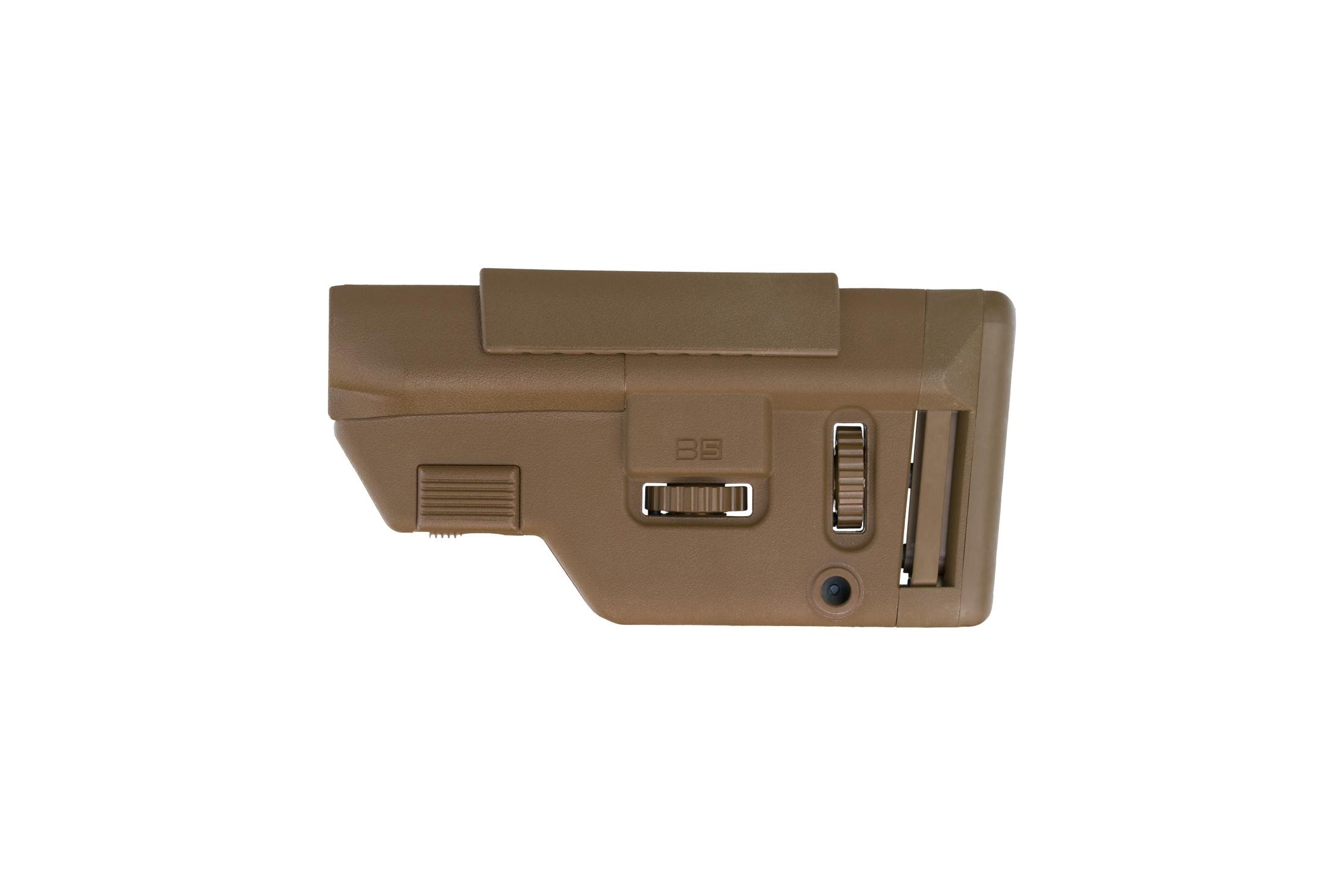 The B5 Systems AR-15 Collapsible Precision Stock (CPS) Long takes all the stability of a fixed stock and combines it with the versatility of an adjustable carbine stock. It features the same durable polymer build quality and fitment that B5 stocks are known for and won’t rattle when attached to your carbine length mil-spec buffer tube due to the 12 internal tensioners. The wide cheek rest provides a comfortable cheek weld and is elevation adjustable while the rubber butt pad can be extended to ensure your head is positioned at the right height for your scope setup. Adding to the versatility of this AR-15 stock are the anti-rotational QD mounts, fixed sling mounts, and bottom mounted M-LOK slots for attaching monopods or other accessories. The CPS long model is designed for side charging and LAW side folding adapter equipped rifles.
