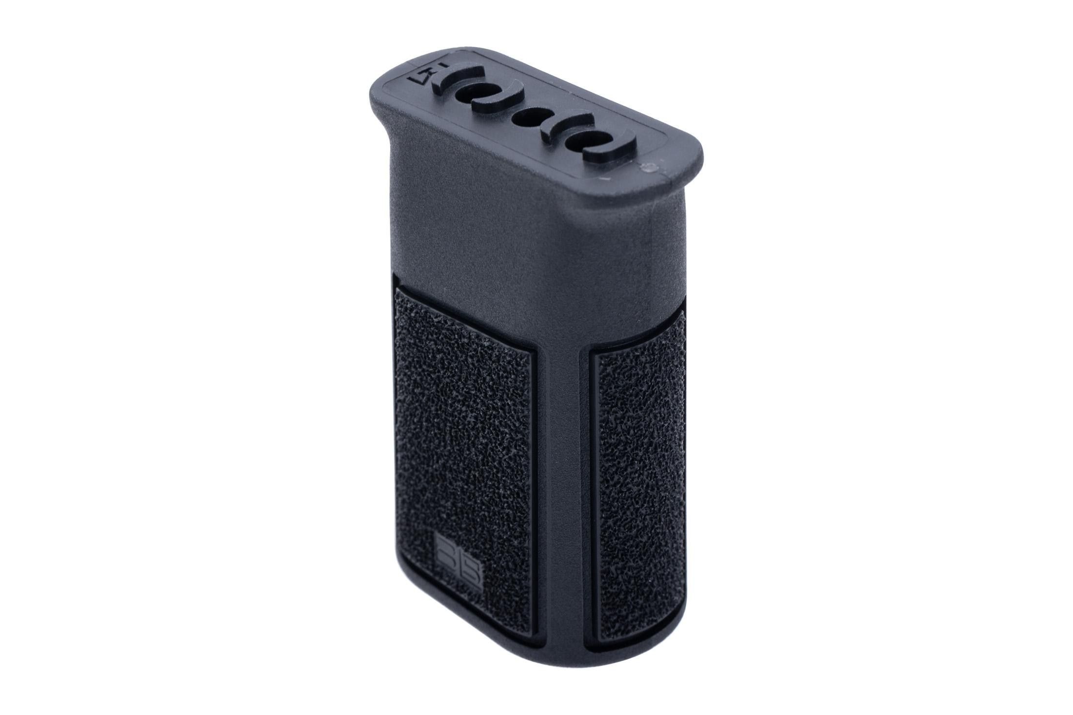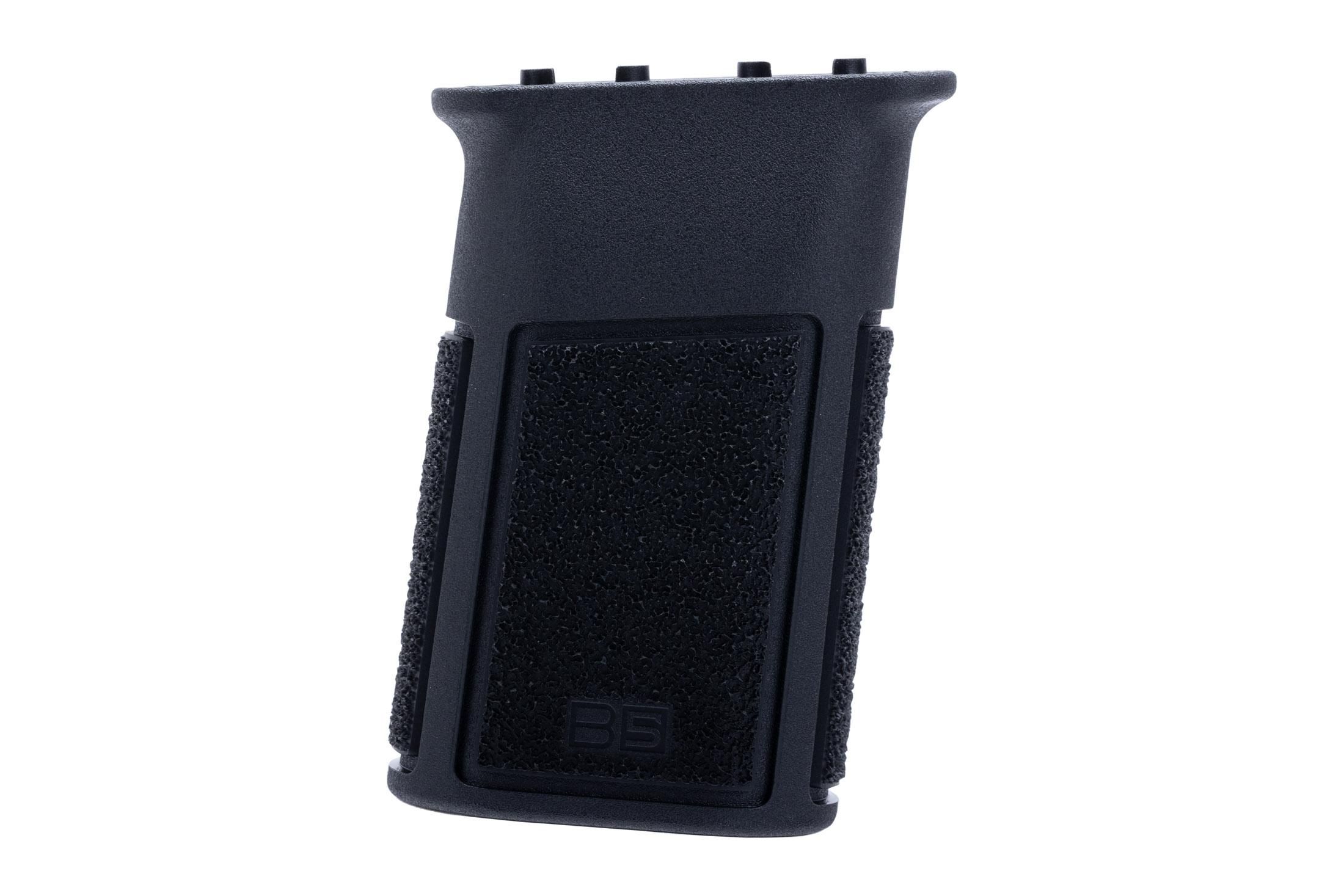 The B5 Systems Vertical Grip is designed to enhance weapon control and handling. Its ergonomic design, combined with aggressive texturing on all four sides, ensures a secure and comfortable hold. Constructed from a durable composite material, this grip is lightweight yet robust. It can be mounted in two different orientations, allowing users to customize their setup according to personal preference. This grip is compatible with standard M-LOK handguards, making it an excellent choice for improving the comfort and control of AR-15 platform rifles. It is available in black.