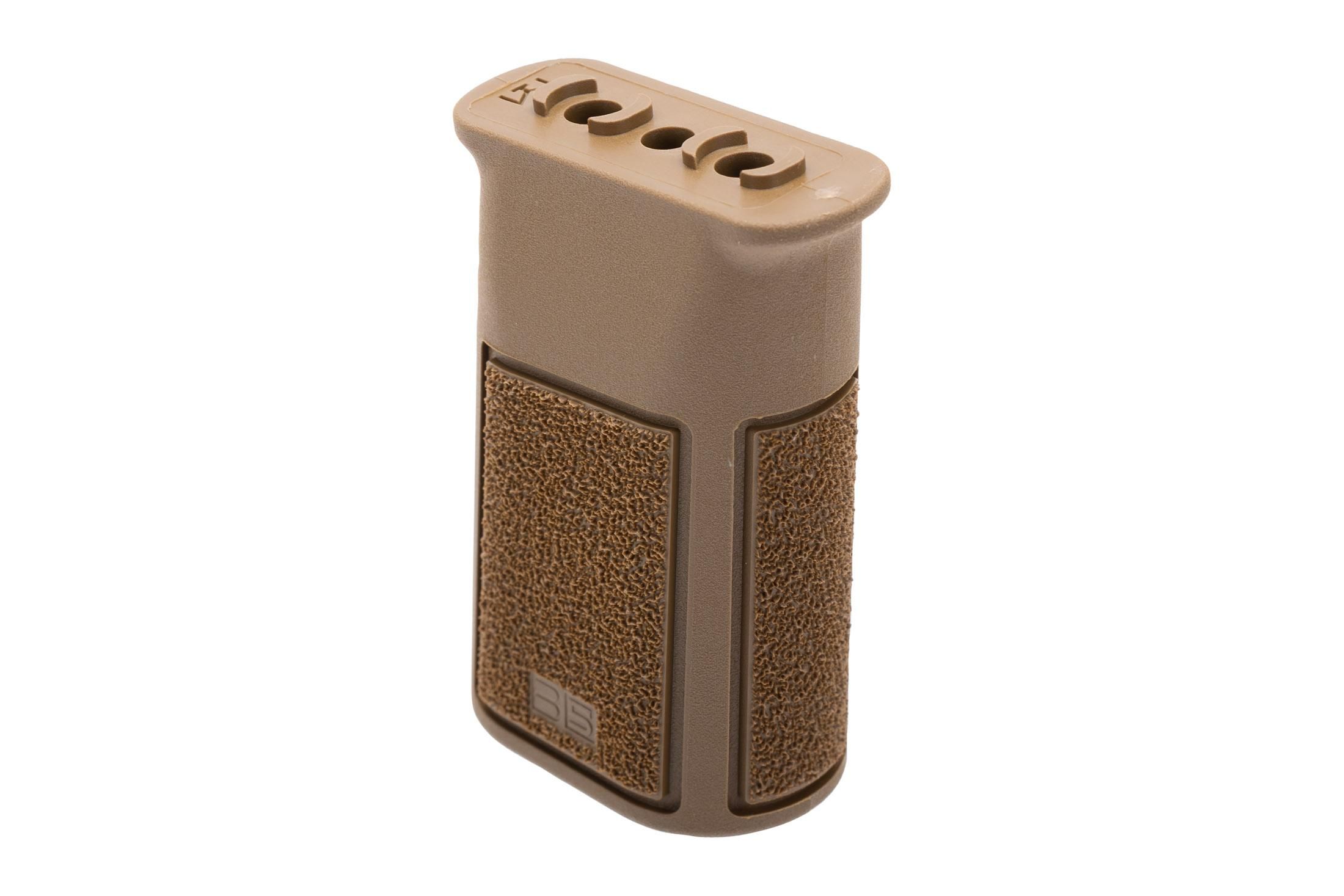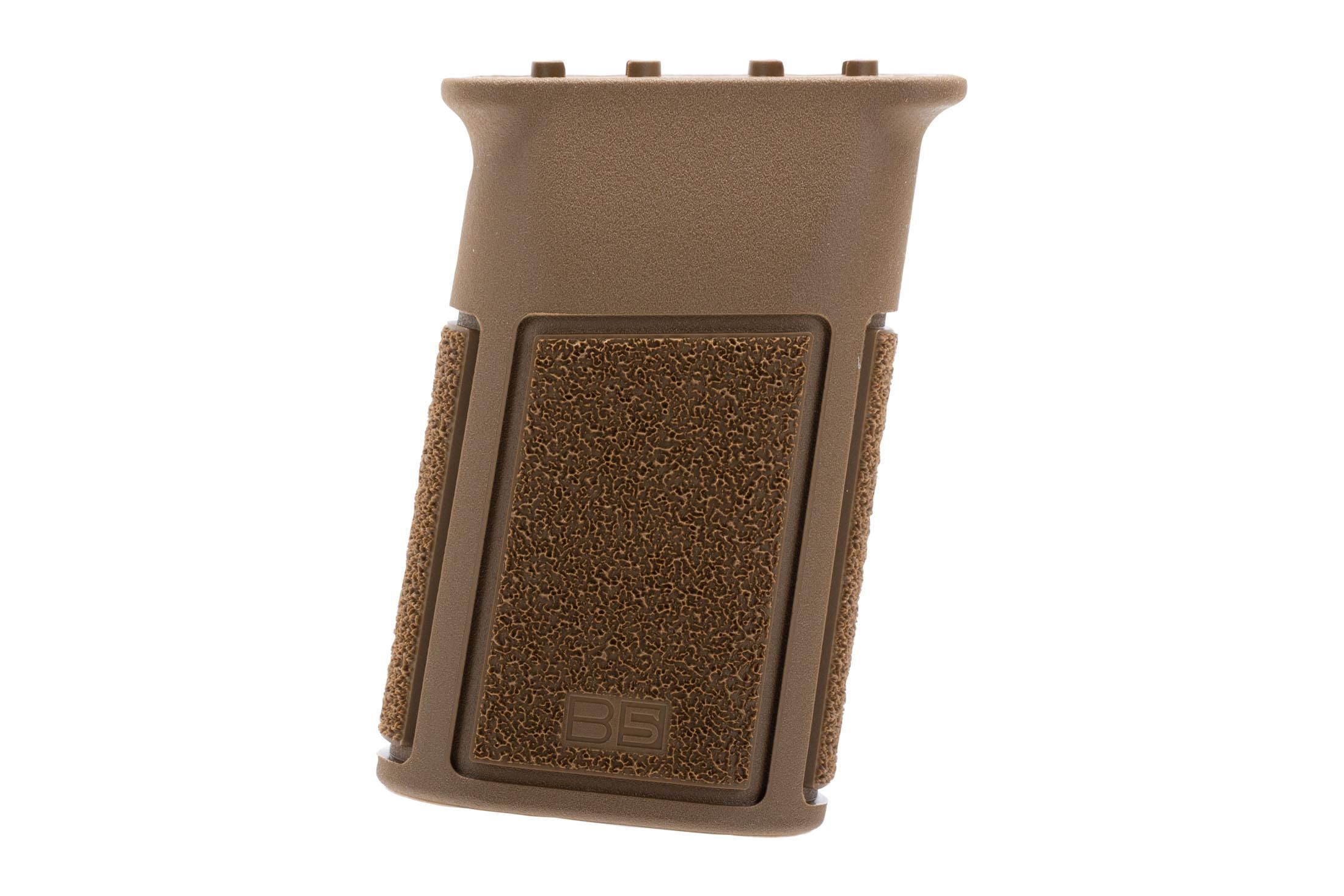 The B5 Systems Vertical Grip is designed to enhance weapon control and handling with its ergonomic design and aggressive texturing on all four sides, ensuring a secure grip. Constructed from durable composite material, it features lightweight yet strong construction. This versatile grip can be mounted in two orientations to suit user preference and is compatible with standard M-LOK rails. Available in Coyote Brown, it’s an excellent choice for shooters aiming to improve the comfort and control of their AR-15 platform rifle.