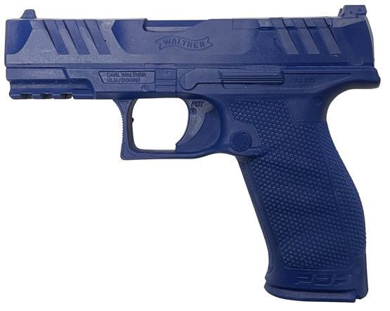 The Blueguns WALTHER PDP Full Size 4" Trainer is specifically engineered for Law Enforcement and Military Training purposes. Constructed from impact-resistant polyurethane with steel reinforcement, this inert replica emulates the details, handling, and balance of the Walther PDP Full Size 4-inch 9mm pistol. The "Law Enforcement Blue" color contributes to safety during training. Carefully engineered to ensure accuracy and realism, this trainer is an essential tool for law enforcement and military personnel seeking skills enhancement in a controlled environment. The inert replica, with its precision-crafted design and recognizable color provides a reliable and authentic training experience for professionals honing their expertise.