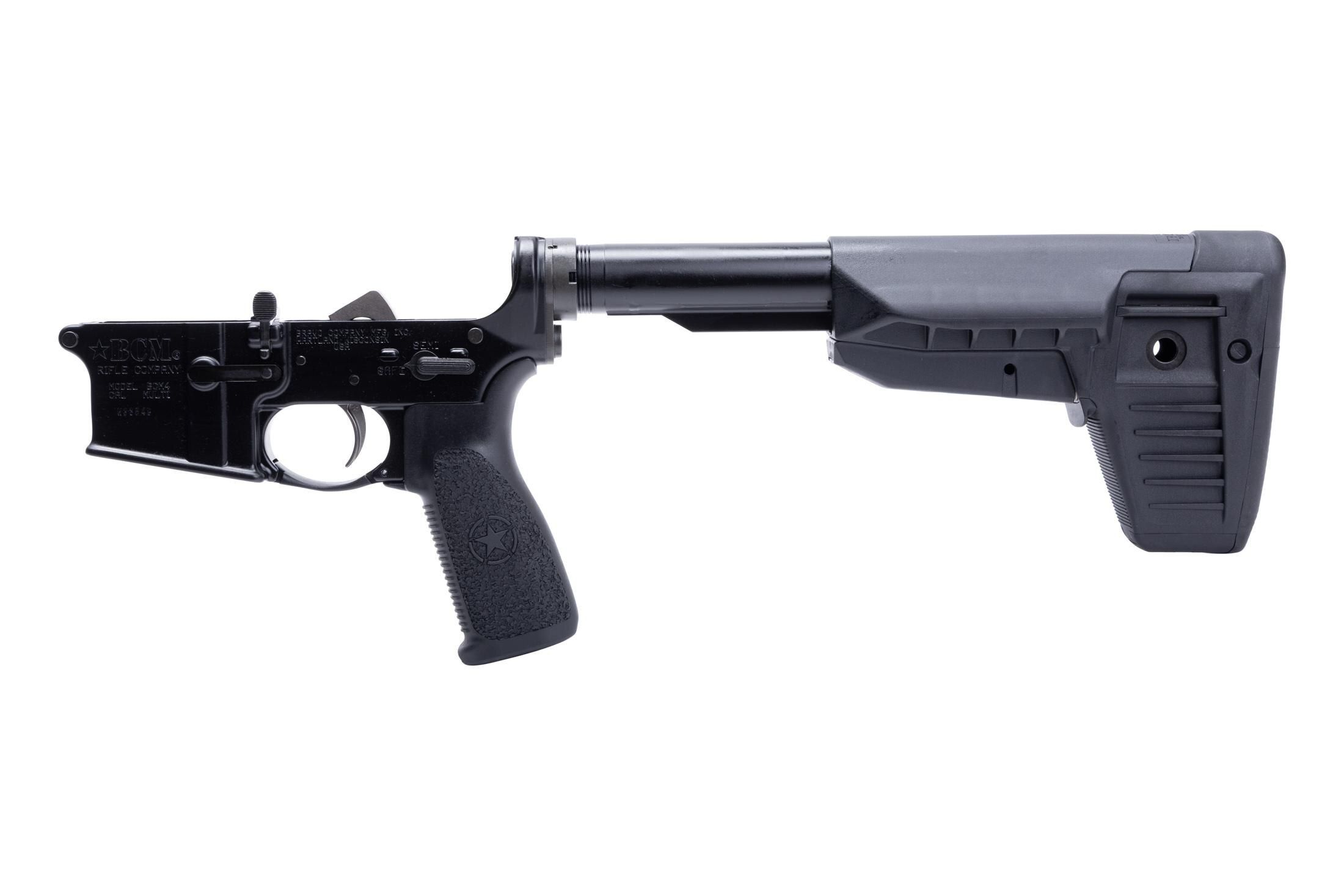 The Bravo Company Manufacturing Complete AR-15 Lower Receiver is built to Mil-Spec ensuring compatibility with a wide range of parts and accessories. This AR-15 lower comes fully assembled and ready to attach to any Mil-Spec complete upper. The receiver is forged from 7075-T6 aluminum and hardcoat anodized black and features an enlarged polymer trigger guard already installed. Additionally, this complete AR lower features a BCM grip, Mod-1 SOPMOD stock, and the MK-2 buffer system. This buffer system is an intermediate length between rifle and carbine systems offering the best of both worlds giving you the LOP a rifle stock and the adjustability of a carbine stock. It also offers a ton of improvements with short barrel rifles by helping to improve reliability and decreasing felt recoil.