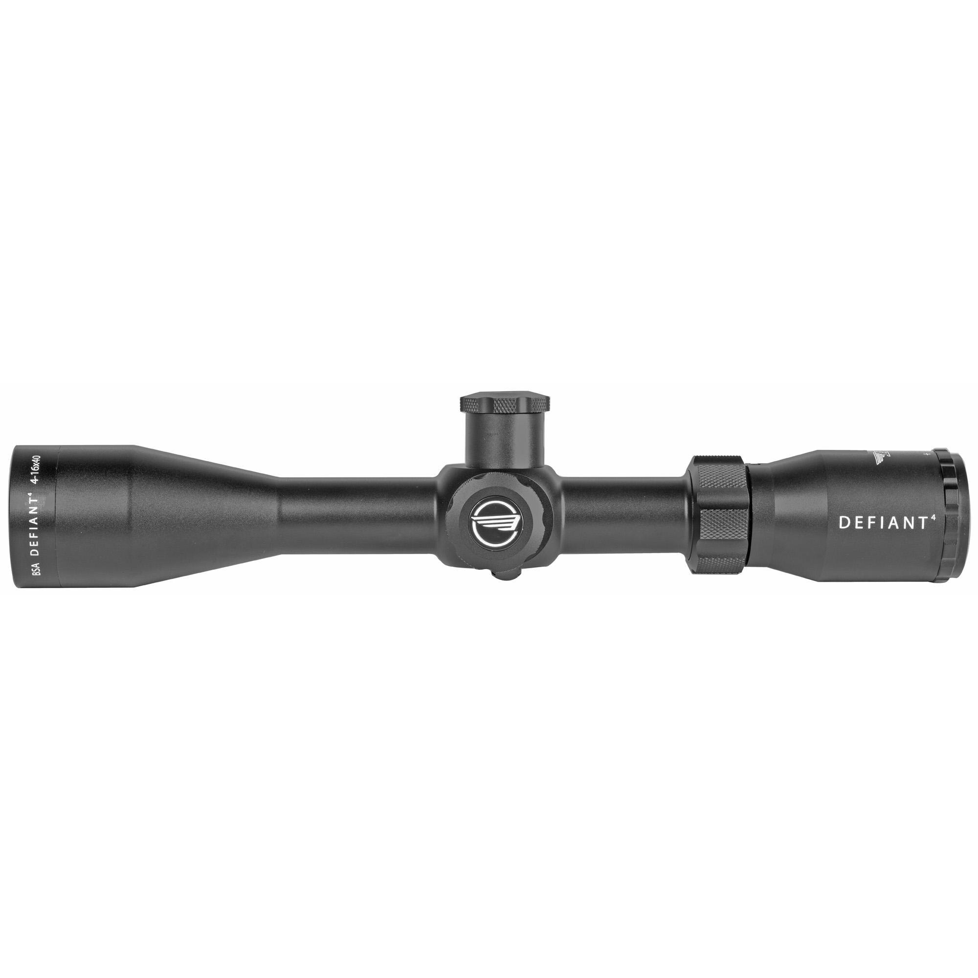 Also, these sights from BSA come with fully multi-coated optics for maximum light transmission, providing crisp and clear imagery downrange. The DEFIANT4 scope from BSA sports a 40mm aperture that enhances the ability to see clearly in low light using the unique adjustable MOA-1014 reticle. The optical system from BSA also allows precise MOA adjustments of one-eighth click per hundred yards using BSA's unique push-pull turret design.