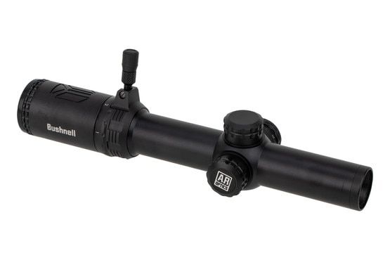 Bushnell's AR optics 1-6x24mm with an illuminated reticle that features the very innovative Bushnell Tactical Reticle which offers quick acquisition holdovers based on the AR platform. This illuminated reticle offers quick competition style, or depredation target acquisition that gives you quick real-time access to ballistic leverage through your optic. Generally speaking, the AR optics line from Bushnell is a highly Innovative and very quick to adjust line of rifle scopes which shine on the AR-15 rifle and other substantially similar platforms. The Throwdown Power Change Lever offers quick Zooming capabilities, and a durable build. The 30mm tube diameter features IPX7 construction which allows waterproofness to a depth of 1M for 30 minutes, and has a nitrogen purged o-ring sealed tube. The capped turrets offer extra durability for competition or hardcore outdoor use. The optics are multi-coated for durability and to improve light gathering capability and image brightness. The overall compact size and lower weight (18 oz) ensures that the scope matches your carbine and gives you everything you need without stuff that you don't. This is a 1x to 6x magnification quick-zoom AR-15-specific optic that features a second focal plane reticle.