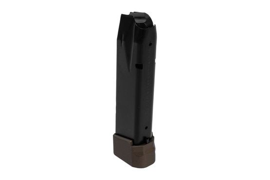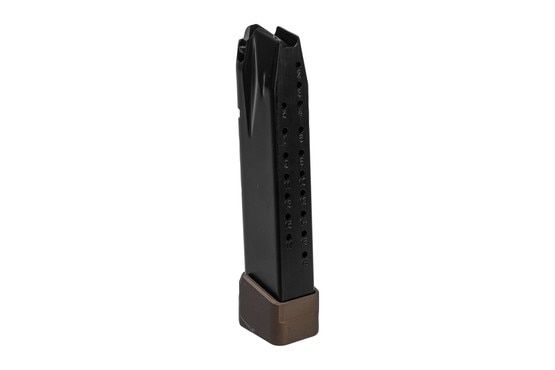 The Canik TTI Combat 9mm Magazine offers an impressive 21-round capacity with its +3 bronze extension, providing both extra rounds and enhanced grip space. Designed for the Canik TP9 series pistols, this factory magazine combines a steel construction with a corrosion-resistant black finish, providing durability and reliability. Whether for concealed carry, tactical shooting, or competition, this magazine is a dependable primary or backup option for serious shooters.