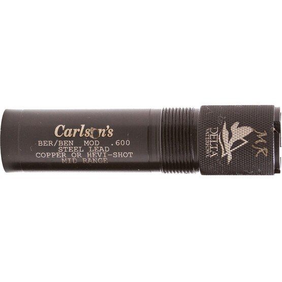 The Carlsons Delta Waterfowl Choke 12 ga. Beretta/ Benelli Mobil Set is expertly crafted from durable 1704 stainless steel, ensuring long-lasting performance. Designed to deliver tighter and denser patterns compared to conventional choke tubes, these extended chokes feature a 25% longer parallel section, resulting in consistently accurate shots. The knurled end allows for quick and effortless removal, while the laser markings on the end and body provide easy reference for constriction and size. With exceptional compatibility with steel shot, these chokes guarantee exceptional results. However, it is important to note that the Long Range Constriction should not be used with steel shot larger than BB or any steel load faster than 1550 FPS. For loads exceeding this size and speed, the Mid Range choke tube is recommended. Backed by Carlson's lifetime warranty, the Carlsons Delta Waterfowl Choke 12 ga. Beretta/ Benelli Mobil Set is a reliable and essential accessory for waterfowl hunters.