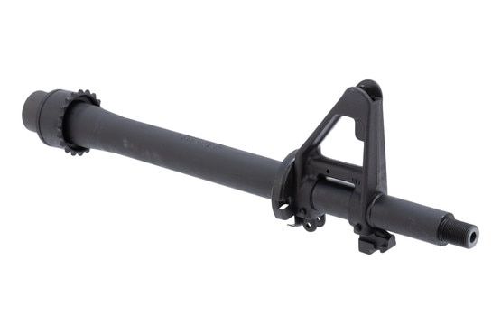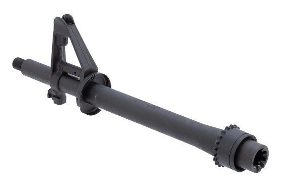 The Colt M4 Commando Heavy Barrel Assembly features a 5.56 NATO-compatible AR-15 barrel with fixed front sight, ideal for shooters looking to build a short but highly capable AR-15 that utilizes iron sights. The 11.5" barrel features a heavy profile with Chrome Moly construction, a carbine length gas port, and a 1 in 7 rate of twist. The 1/2x28 threaded muzzle is left bare, allowing shooters to utilize a wide range of muzzle devices to fit their specific build. The barrel is chrome lined for increased durability. The matte parkerized provides excellent corrosion-resistance. Made in the United States.