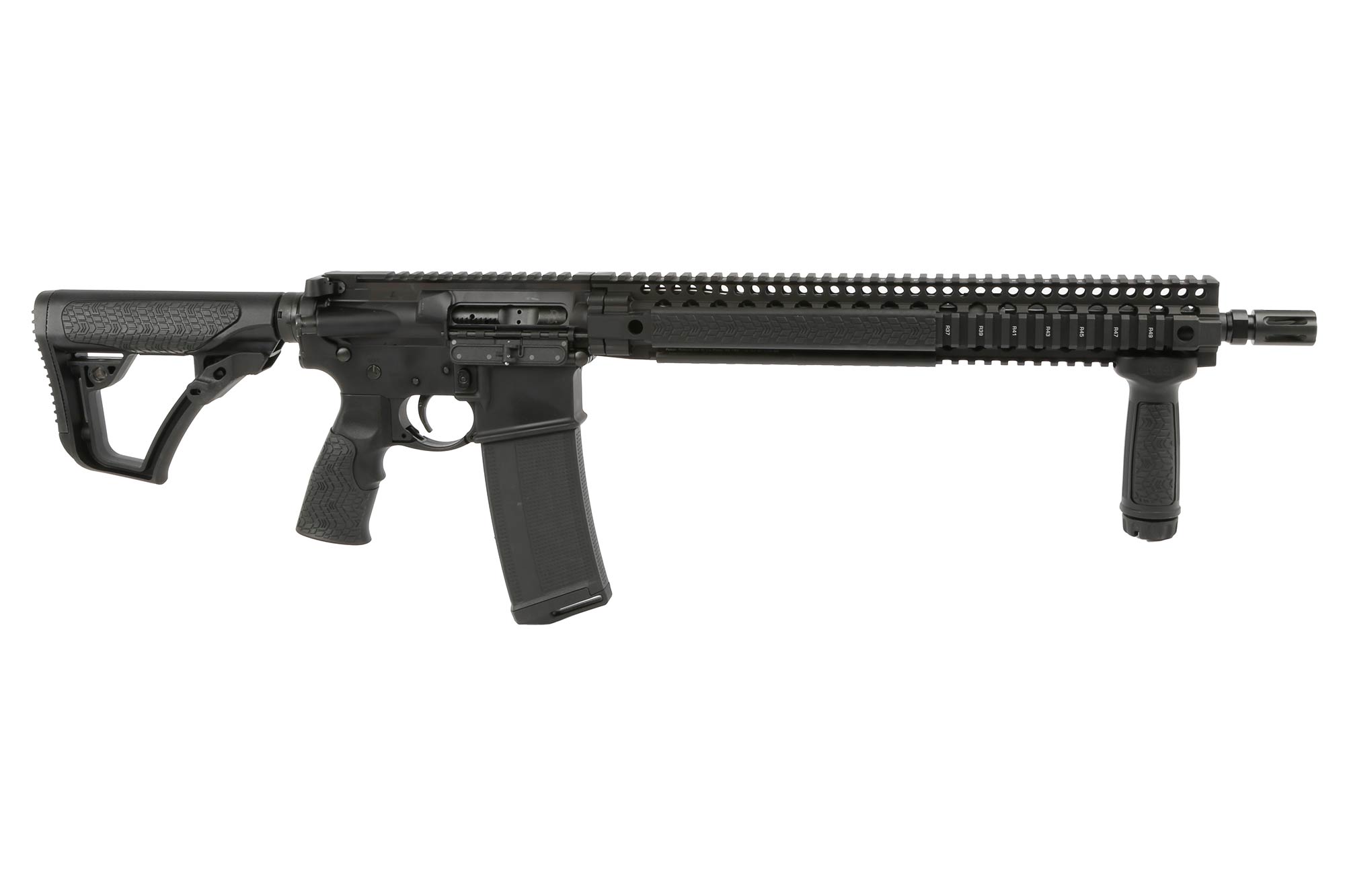 - Daniel Defense overmolded pistol grip and collapsible stock.