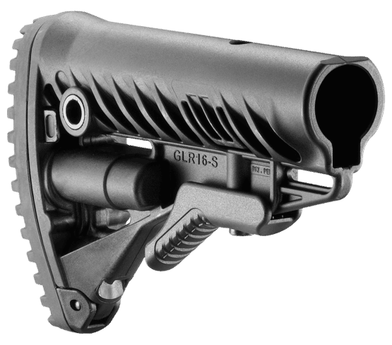 The F.A.B. Defense GLR-16 Buttstock is designed for the AR15/M16 platform, offering enhanced versatility and stability. Its stock extension and specially designed rubber butt pad ensure quick and secure shoulder positioning. The patented Anti-Rattle mechanism guarantees a snug fit on both MIL-SPEC and commercial aftermarket buffer tubes, while the durable fiberglass reinforced polymer composite construction provides long-lasting performance.