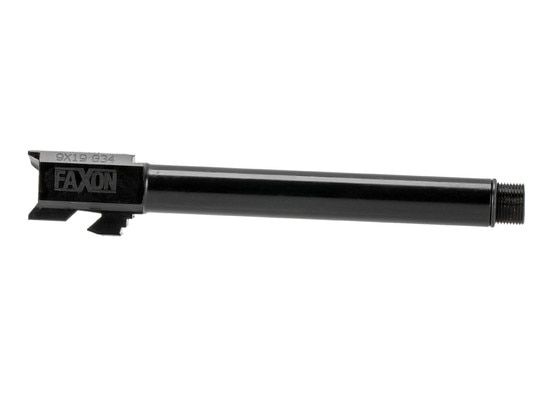 The Faxon Firearms Threaded Barrel is machined from 416R stainless steel and features a black Nitride finish for long lasting durability. The 1:10 button rifled twist rate and 11-degree target crown ensure you are getting the most accuracy possible out of this barrel. It is also threaded 1/2x28 for attaching compensators to truly customize your gun. This match barrel for the Glock G34 features precise tolerances and a drop in fit for instant improvement in your competition gun.