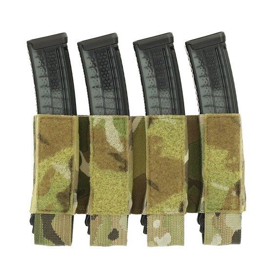 The Turnover Quad SMG Large Pouch, featuring Multicam, securely holds up to four large SMG magazines with elastic retention, integrating seamlessly with various plate carriers and front flaps for enhanced versatility and functionality. With its Velcro hook back and loop front, quick and easy access to magazines is ensured in critical situations.