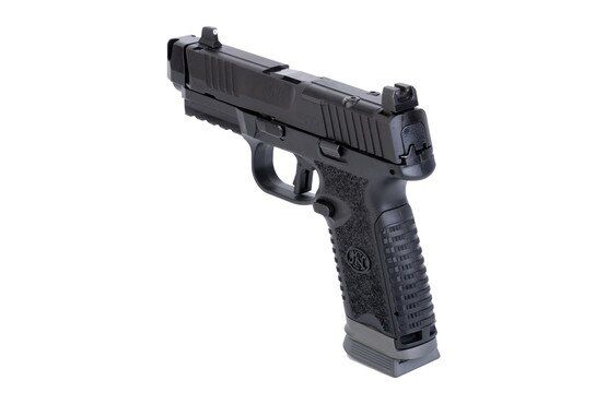 Additional features include interchangeable backstraps, a weighted baseplate for faster magazine ejections, and ambidextrous slide stop levers and magazine release. The pistol ships with three 17-round magazines, a soft FN logo pistol case, and other premium accessories, making it a complete package ready for any mission.
