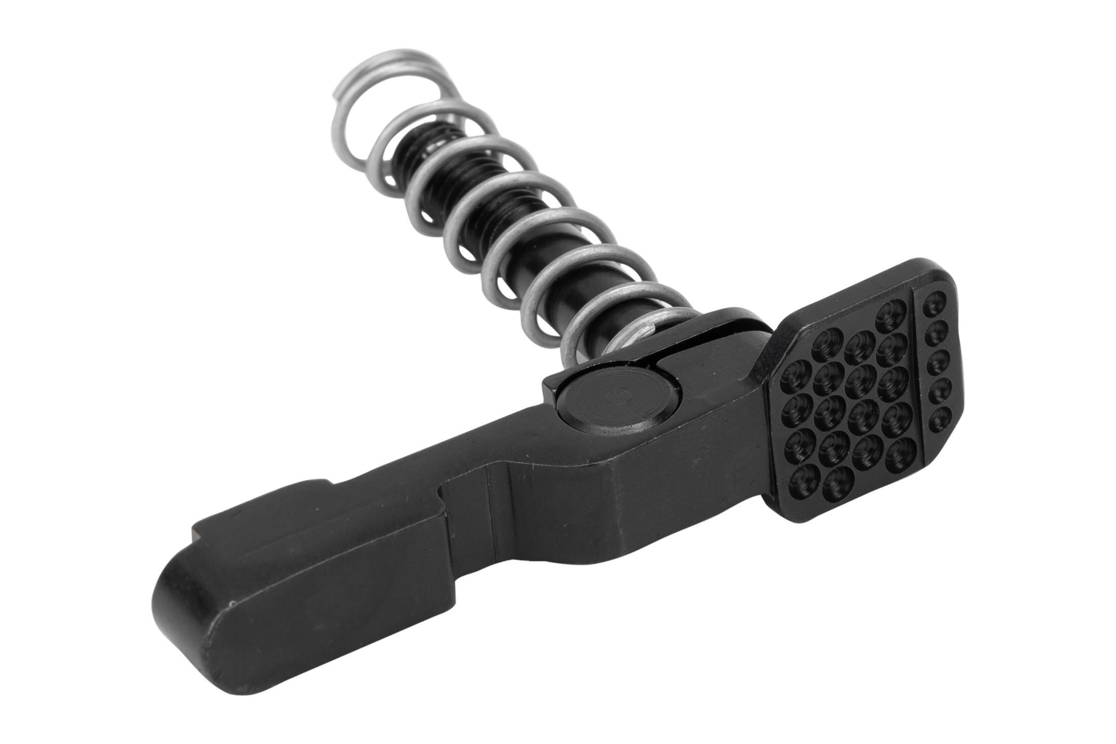 FCD has also integrated design features to help reduce the risk of accidental activations. The shaft of the steel magazine catch has been shortened 0.03", or a full rotation of the magazine catch button. This modification reduces the height of the right hand magazine release button to help mitigate accidental magazine drops. The other feature is the included 10.9 lb spring. Standard MIL-SPEC mag release springs are relatively weak at 8.3 lbs, and this can make dropping your mag unintentionally as easy as slinging your rifle. With the stiffer spring, this risk is significantly reduced!