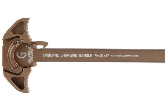 The Geissele Airborne Charging Handle (ACH) is a machined 7075‑T6 aluminum handle built for dependable ambidextrous use. Dual‑contoured levers provide positive engagement on both axes, and checkered surfaces give extra purchase when wearing gloves. A raised rear lip helps divert gas away from the shooter on short‑barrel or suppressed setups, while the low‑profile lever lowers the chance of snagging on gear. The ACH is finished with a Type III hardcoat anodize in Desert Dirt Color (DDC) for long-lasting surface protection.