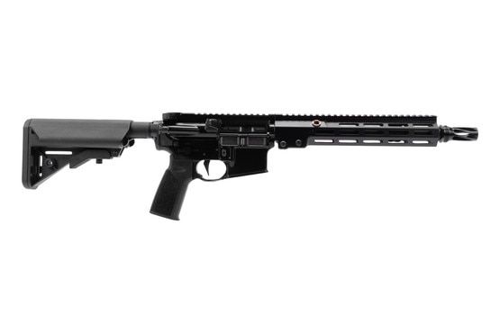 The Geissele Automatics Super Duty MOD 1 SBR is designed to perform in a wide range of shooting applications, from duty to competition. Built around an 11.5" cold hammer forged, chrome-lined barrel, this AR-15 is chambered in 5.56 NATO and features a 1 in 7 rate of twist, carbine-length gas system, and 1/2x28 threaded muzzle with a HUXWRX QD flash hider. The 10.5" SMR MK16 M-LOK handguard provides shooters with versatile and rugged accessory mounting options, and the B5 Systems Enhanced Sopmod stock and Geissele A17 pistol grip provide exceptional ergonomics.Features: