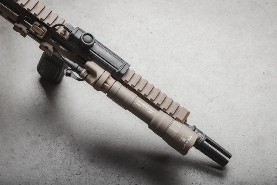 For optimal target identification in low-light environments, this rifle has been paired with the powerful SureFire M640DF Scout Light Pro, one of the most powerful weapon lights on the market. This light can be powered by either 18650 or CR123A batteries, and it’s capable of projecting either a 700- or 600-lumen white light projection with a powerful peak beam intensity of 100,000 or 90,000 candela, depending on the batteries you use.