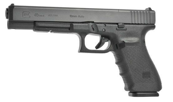 Perfect for personal defense, hiking, and competition shooting, the powerful GLOCK 40 Gen 4 MOS is a highly capable semi-automatic pistol with an optic-ready MOS (Modular Optics System) slide. This US-made 10mm pistol features a 6.02" barrel length, 9.49" overall length, 15+1 round capacity, durable gas nitride black finish, and Adjustable Glock Sights. The ergonomic black polymer frame features a grip-enhancing texture and Glock's accessory mounting rail for weapon light mounting. This handgun includes three 15-round magazines.
