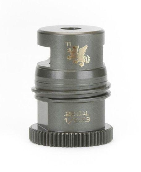 The Griffin Armament DUAL-LOK Minimalist Titanium 5.56 Muzzle Brake, constructed from 6AL4V Titanium, features a wear-resistant baffle to extend suppressor service life. Its compensating ports reduce muzzle climb and felt recoil, enhancing firearm control. Weighing only 1.4 ounces and measuring less than 1.5" long, this muzzle brake adds minimal weight and length to the host firearm. The brake includes a shim set for precise timing and is finished in durable, anti-galling Type 2 Tiodize. With 20 effective positions, it provides a secure suppressor mount and minimal POI shift, making it a top choice for performance and reliability.