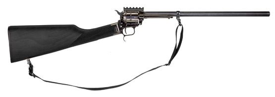 The Heritage Manufacturing Rough Rider Tactical Rancher 22 LR Single Action Revolver carbine features a threaded 16.125" barrel, full stock, and optic-ready picatinny rail section making it an incredibly fun choice at the range. Chambered for .22 LR, the Rough Rider Tactical is affordable to feed and easy to shoot thanks to its minimal recoil, muzzle flash, and report. The 1/2x28 threaded barrel can also accept your favorite rimfire suppressors, making it even more pleasant to shoot. Whether you're punching holes in paper, plinking cans, training new shooters, or hunting small pests and game, the Heritage Rough Rider Tactical Rancher .22 LR single action revolver carbine is an excellent choice.