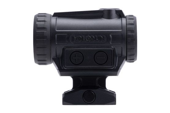 The Holosun ARO-EVO is a high-performance rifle optic featuring a redesigned 26mm housing that enhances situational awareness with its expanded viewing window. This optic incorporates solar enhancement and Shake Awake technology, delivering up to 50,000 hours of battery life. This optic features a 2 MOA green dot reticle, parallax-free aiming, unlimited eye relief, and 12 brightness settings (8 for daytime use and 4 for night vision). Built with a 6061 aluminum housing and a corrosion-resistant black finish, the ARO-EVO is IPX8 waterproof and operates reliably in temperatures ranging from -30℃ to 60℃. It includes a lower 1/3 co-witness mount, a lens cap, and an anti-reflection device system, making it an ideal match for the Holosun magnifier series.