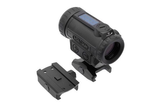 The Holosun ARO-EVO is a cutting-edge rifle optic with a 26mm housing to provide an expanded viewing window. This optic features a crisp 2 MOA red dot reticle, parallax-free aiming, and unlimited eye relief. It features 12 brightness settings (8 for daytime use and 4 for night vision) and utilizes solar enhancement along with Shake Awake technology, offering up to 50,000 hours of reliable operation. Constructed from durable 6061 aluminum with a corrosion-resistant black finish, the ARO-EVO is IPX8 waterproof and functions in extreme temperatures ranging from -30℃ to 60℃. This optic includes a lower 1/3 co-witness mount, a lens cap, and an anti-reflection device system. Additionally, it pairs seamlessly with the Holosun magnifier series.
