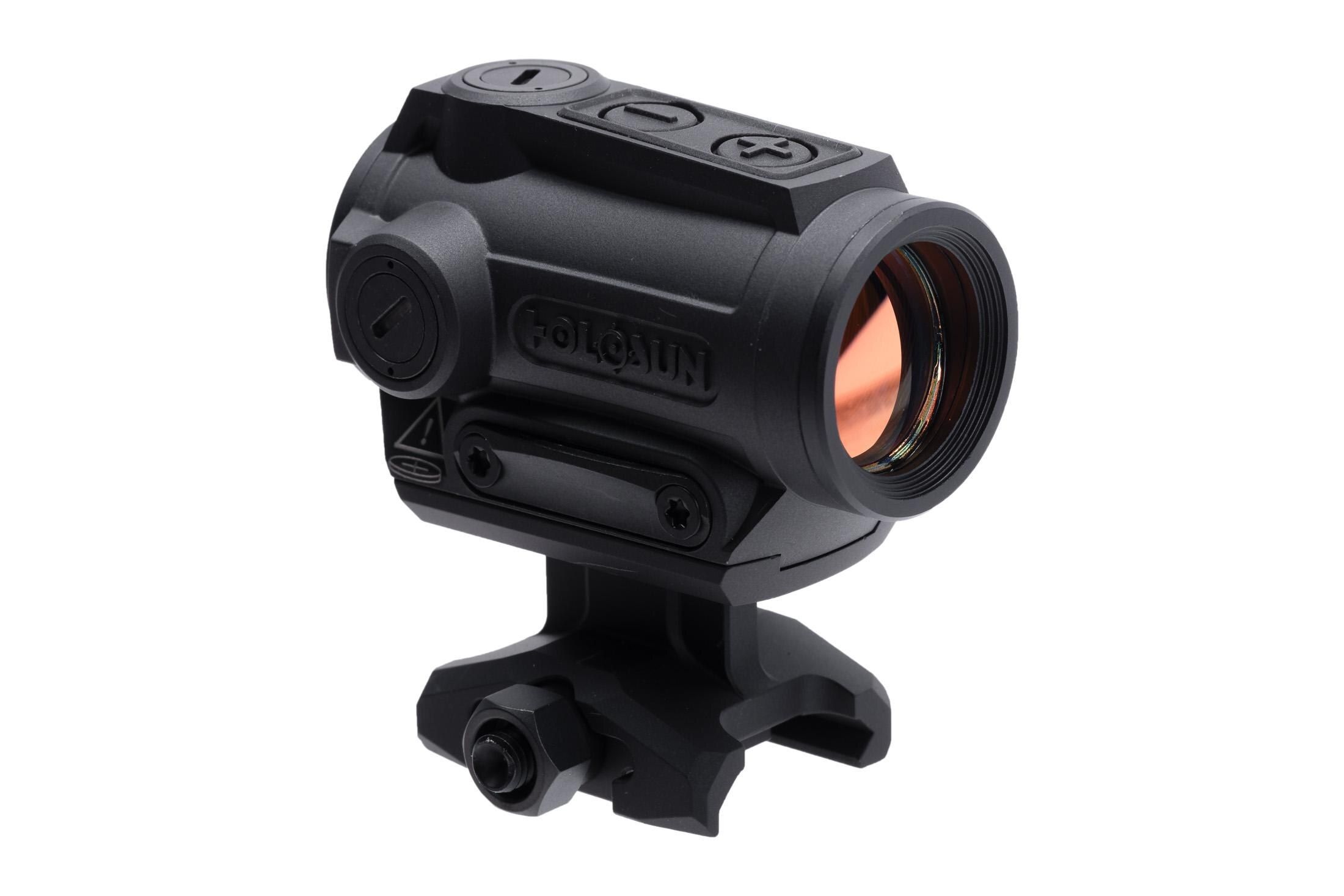 The Holosun ARO Multi-Reticle Green Dot Sight builds on the success of the 20mm 403 and 503 series, introducing a refined 22mm housing and a new 1.63" lower 1/3 co-witness pedestal mount. This Advanced Rifle Optic features the Multi-Reticle System (MRS) that lets you switch between a 65 MOA circle with a 2 MOA dot, a standalone 2 MOA dot or standalone 65 MOA circle, all with crisp green illumination. Shake Awake technology conserves battery life by deactivating the LED when idle and instantly reactivating it with the slightest motion. Powered by a CR2032 battery, the ARO delivers up to 50,000 hours of operation at mid-level brightness. With 10 brightness settings, including two for night vision, and a durable aluminum housing with a corrosion-resistant finish, this optic is built for rugged reliability.