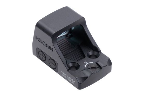 The Holosun HS407K X2 Blackout mini reflex sight for pistols delivers a compact, purpose built red dot for subcompact carry pistols. The sight uses a crisp 6 MOA dot and a high efficiency LED that can run up to 50,000 hours on a single battery. Lock Mode keeps settings from changing by accident and Shake Awake keeps the dot off while the pistol is still and ready when motion is detected. The housing is 7075 T6 aluminum with a side mounted tray for quick battery access and true closed emitter protection for daily carry.