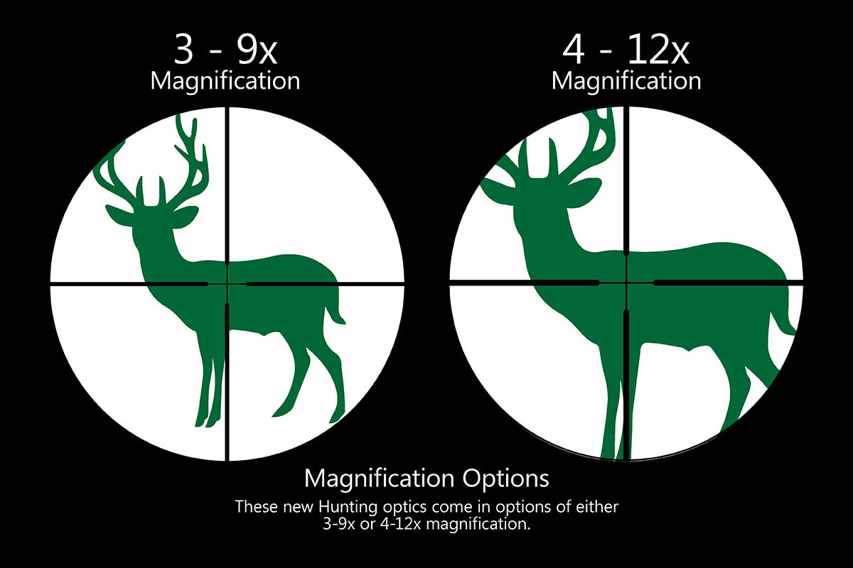Our first hunting scopes offer 3-9x or 4-12x magnification with SFP reticles. Choose the magnification that best fits your hunting environment.