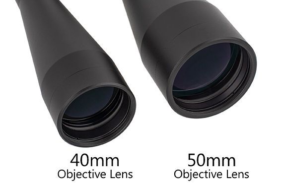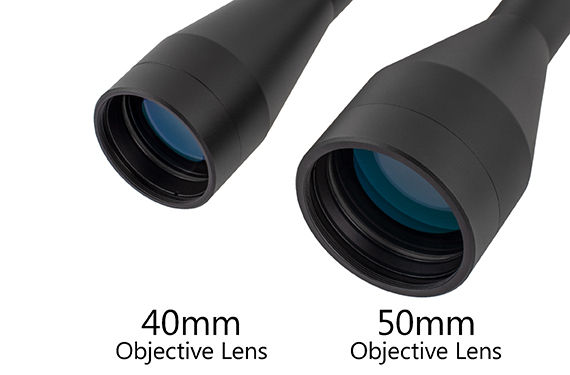 Both scopes have 40mm and 50mm lens variants. Choose 40mm for reduced weight or 50mm for improved exit pupil and light gathering.