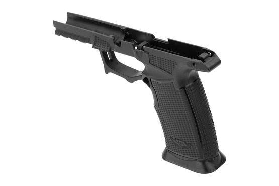 Designed for the Sig Sauer P365 X-Macro, the Icarus Precision AIR 365 X-Macro Frame offers a polymer grip module that retains the ergonomic benefits of its aluminum counterpart, but with a significant reduction in weight. It features a left-side thumb rest, catering specifically to right-handed shooters. The textured surface enhances grip control even in wet conditions, while the flared magazine well allows for smoother and quicker reloads from various angles. This frame also includes a double undercut trigger guard for added grip comfort and control. Equipped with a Mil-Spec 1913 Picatinny rail, it provides versatile options for mounting accessories like lights. Designed to accommodate the 17-round X-Macro magazine, this grip module is ideal for tactical, defensive, or competitive use.
