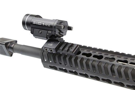 Impact Weapons Components THORNTAIL Offset Adaptive Light Mount is designed extend a weaponlight several inches beyond the end of the forend or rail system allowing the shooter to place the support hand farther forward on the weapon, increasing control, speed, and accuracy while increasing usable rail space for additional accessories! The Thorntail is completely ambidextrous, providing up to 8 mounting solutions on a single quad-rail system, while the cantilever design places the light's bezel above the barrel and in front of the front sight base, eliminating shadows in low- and no-light scenarios. Designed and manufactured in Colorado, USA!