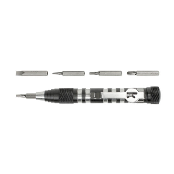 The TX-Tool provides a convenient storage solution for all your bits. All bits store conveniently inside the handle of the tool, so you don't have to worry about losing them. The lightweight aluminum handle, steel bits, and pocket clip make it easy to carry the tool with you wherever you go. The pocket clip bears a cutout Kershaw logo “K”, an indication of its high quality and durability.