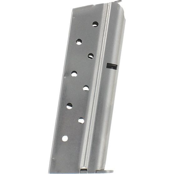 Introducing the Kimber 1911 Magazine 9mm Compact 8 rd. This stainless steel magazine is specifically crafted for Kimber Compact and Ultra models, ensuring a seamless fit and reliable performance. With an 8-round capacity, it provides ample ammunition for your 1911 9mm pistol with a compact grip. The magazine comes pre-drilled for effortless base pad installation, offering added customization options to suit your preferences.