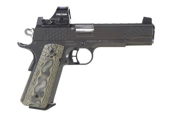 The Kimber KHX Custom 9mm Handgun is built for precision and reliability. Featuring a 5-inch barrel and chambered for 9mm Luger, this full-size 1911-style pistol is equipped with a Holosun HE507C-GR-X2 optic for enhanced accuracy. The durable Gray KimPro II finish ensures longevity and resistance to wear, while the steel frame and Hogue Magrip G-10 grips provide a solid and comfortable hold.