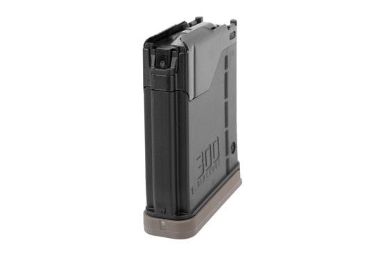 The L5AWM Magazine is built with the reliability of steel, durability of polymer, and weight of aluminum. The magazine design includes a one-piece, wrap-around, steel feed lip assembly and an aggressive surface texture to create the ultimate hybrid magazine.
