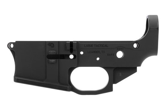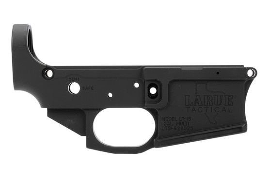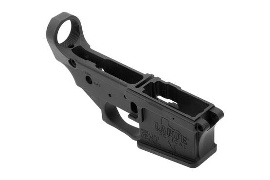 The LT-15 receiver from LaRue Tactical is a high-quality foundation for any AR-15. This stripped lower receiver is built from 7075 aluminum and has a durable anodized finish, with reinforced crucial areas such as the buffer tube and a flared magazine well for quick magazine changes. This lower receiver also features an engraved Texas logo and an enlarged trigger guard for gloved operation.