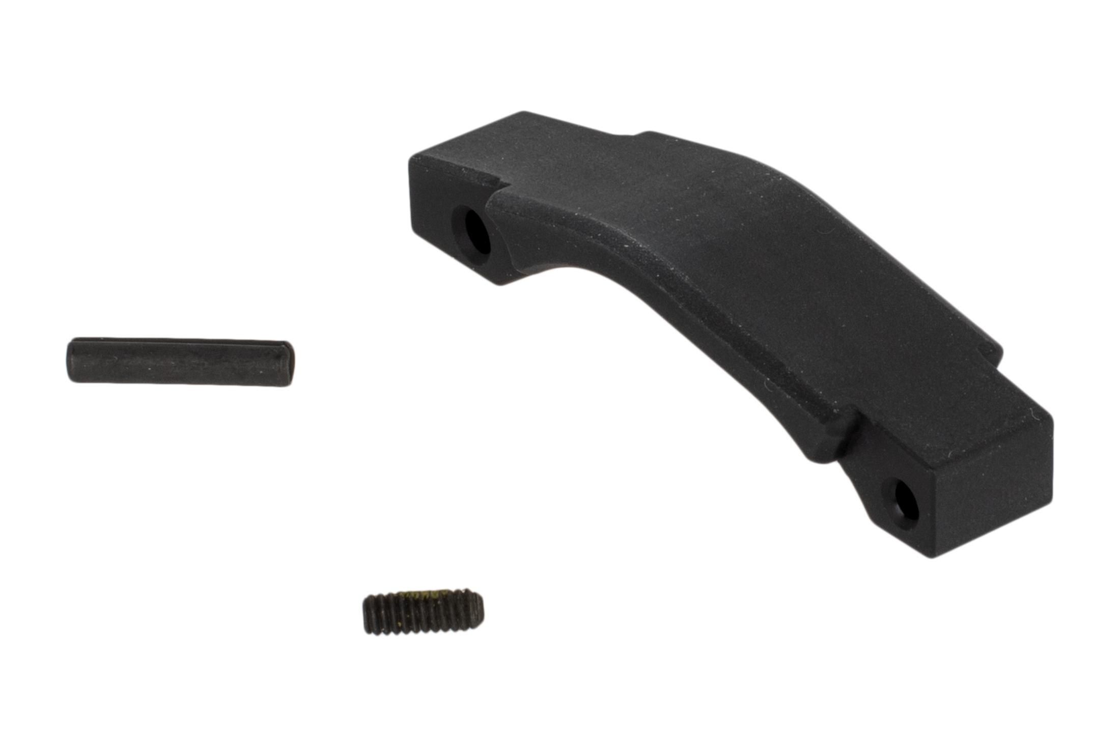 The Magpul Enhanced Trigger Guard is a direct replacement for your AR-15/M4's standard trigger guard. Made from black anodized aluminum, its design features a shallow V-shape, allowing for more comfortable use when wearing gloves, whether for tactical situations or in cold weather. This AR-15 trigger guard is designed with smooth, rounded edges and effectively closes the gap often found at the back of many standard trigger guards. It includes all necessary mounting hardware for easy installation.