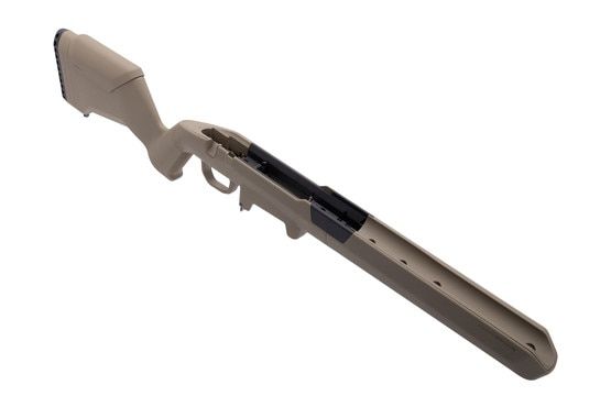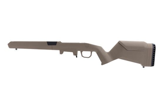 The Magpul Hunter Lite Stock is a lightweight upgrade for Savage AXIS Short Action rifles that doesn't compromise functionality. With a 20% lighter weight compared to the original Hunter series, this stock offers improved maneuverability due to its narrower forend. It is designed for both right and left-hand configurations, equipped with an aluminum V-bedding block and reinforced steel pillars to ensure no deformation occurs. The stock offers adjustable length-of-pull, removable spacers, snap-on cheek risers, an enlarged trigger guard, and built-in sling swivel studs. M-LOK slots on the forend allow for accessory customization, and the integrated magazine well ensures consistent magazine alignment.