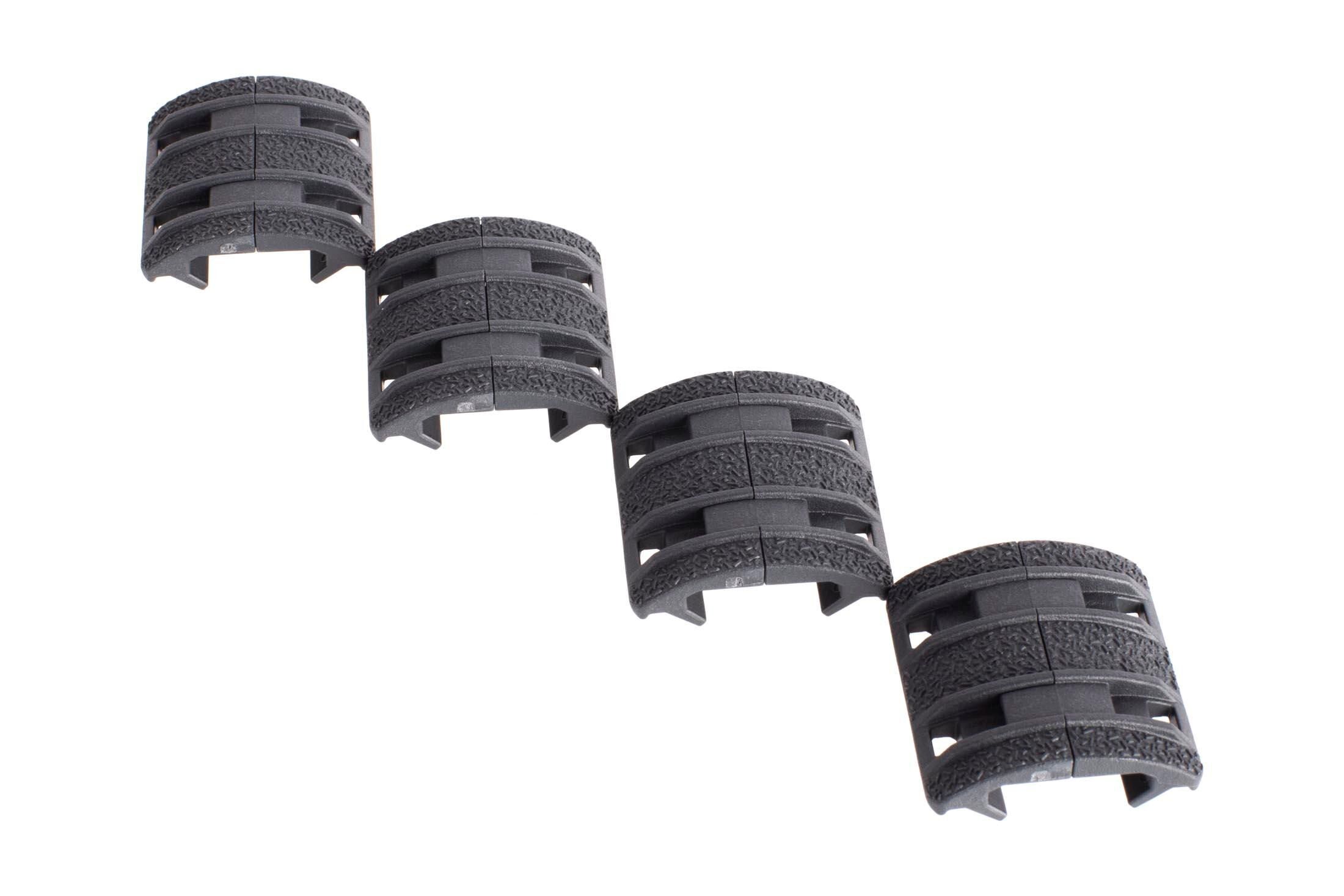 The design and reinforced material construction ensure the panels will remain secured in place, yet are easily removed using the tips of two rounds. Each set comes with four two-piece panels. Together these panels will cover one side of a carbine rail.
