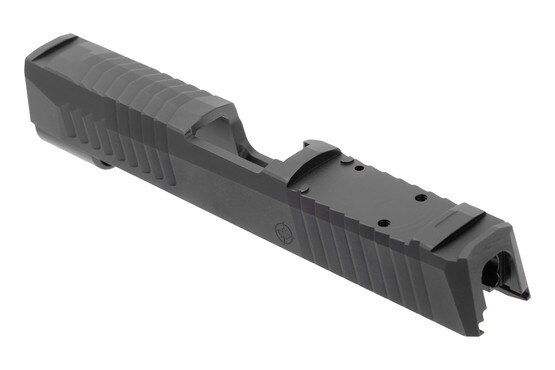 Optic-ready slide for the Sig Sauer P365XL, precision machined from 17-4 steel with a durable black nitride finish. The 5X/Mk1 features full wraparound directional sawtooth serrations for enhanced grip, with deeper rear serrations for extreme traction. Compatible with Holosun K/EPS red dot optics, it maintains compatibility with all SIG OEM internals and P365XL holsters, offering a reliable upgrade to add red dot versatility. Made in America.