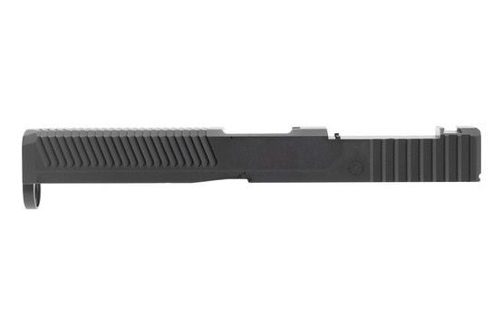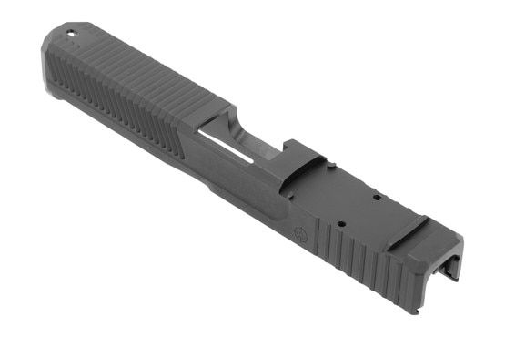Upgrade your GLOCK 17 Gen 5 with the Maple Leaf 5X/MK1 Slide. This high-quality upgrade is manufactured from a 17-4 stainless steel and has a durable black nitride finish. This slide features comprehensive wrap-around directional sawtooth serrations, providing an enhanced grip. The optic-cut slide is compatible with RMR cut red dots.