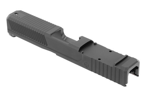 The Maple Leaf 5X/MK1 Slide is a high-quality replacement for the Glock 19 Gen 4 pistol. Crafted from robust 17-4 stainless steel, it features a black nitride finish that enhances corrosion resistance. The slide is equipped with full-length serrations for improved grip and control and is pre-cut to accommodate red dot sights with an RMR footprint.